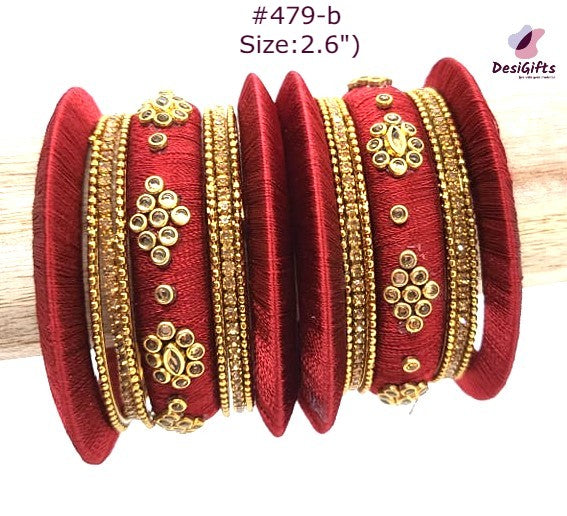 Peach Shade Threaded Bangles Set With Golden Work, BGL# 479