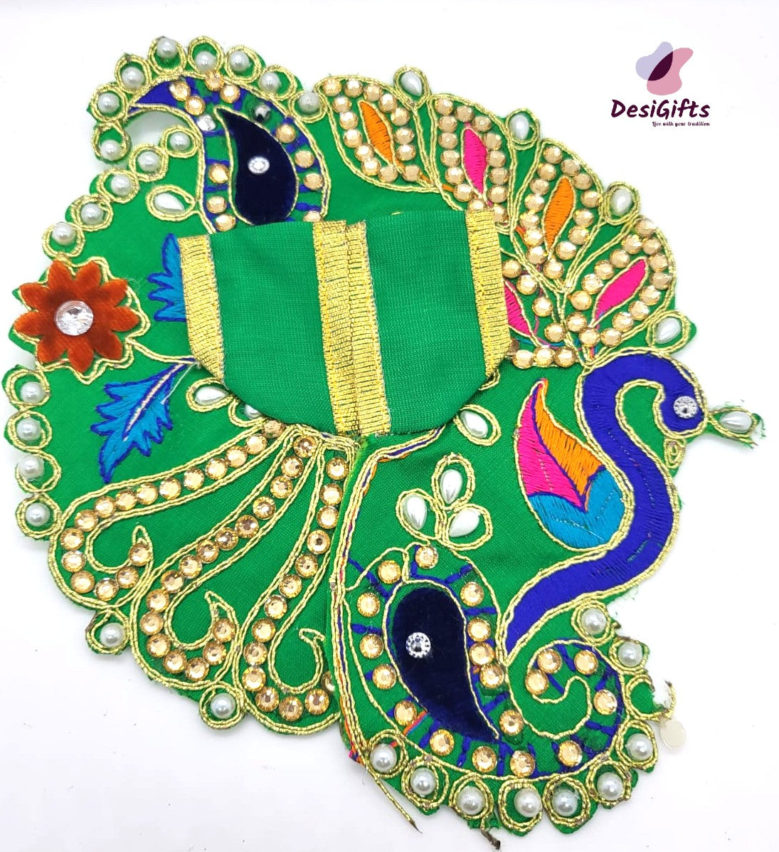 Green Laddu Gopal Dress with Pearls & Stone / Krishna Poshak, RKF# 692