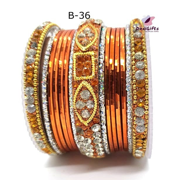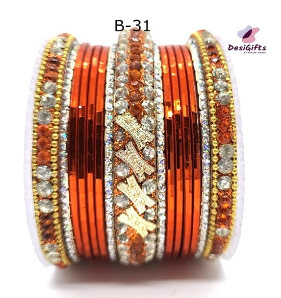 Traditional Stone Studded Bangle Set, Multiple Colors, Size 2.8", BGL# 476