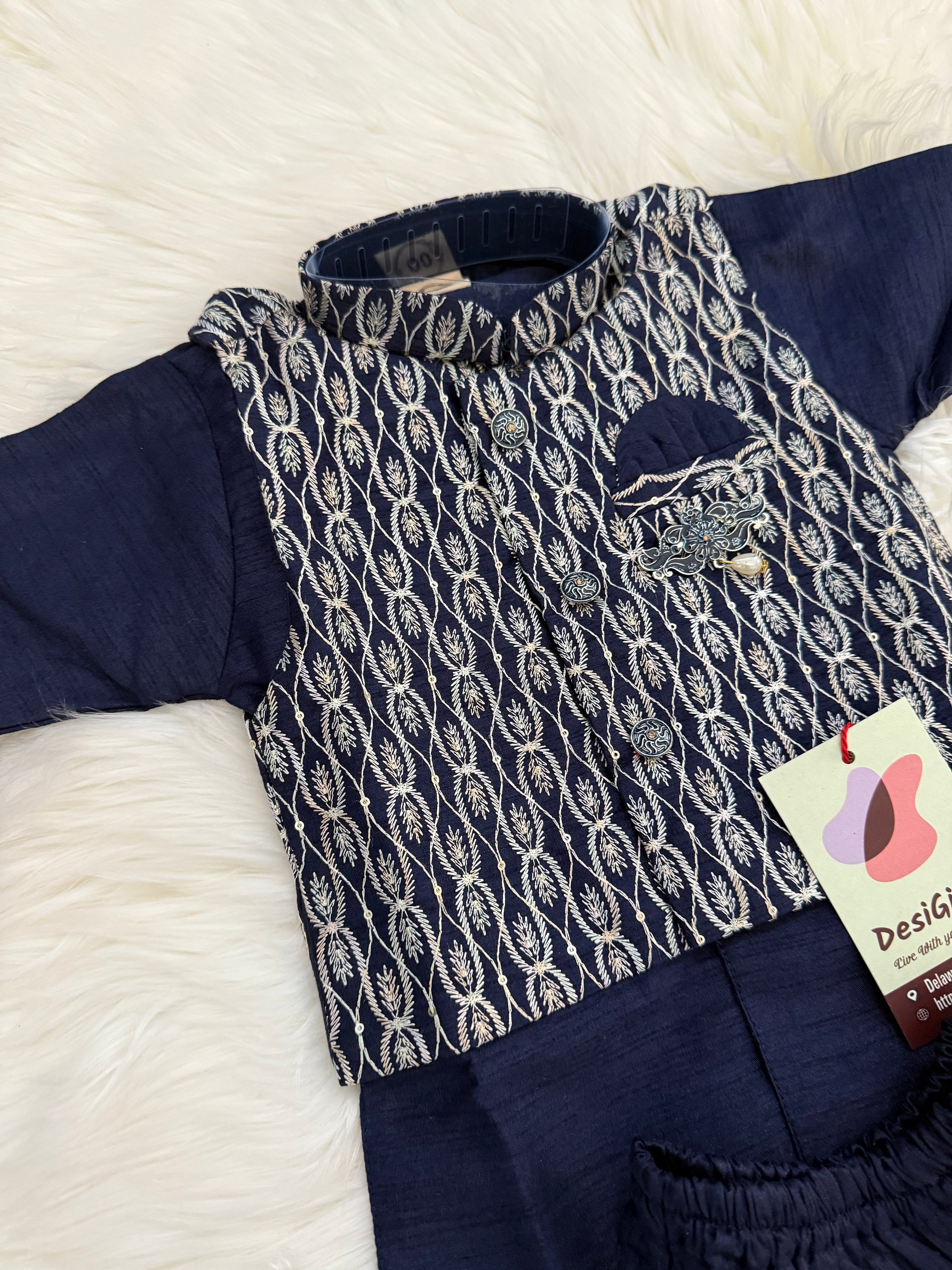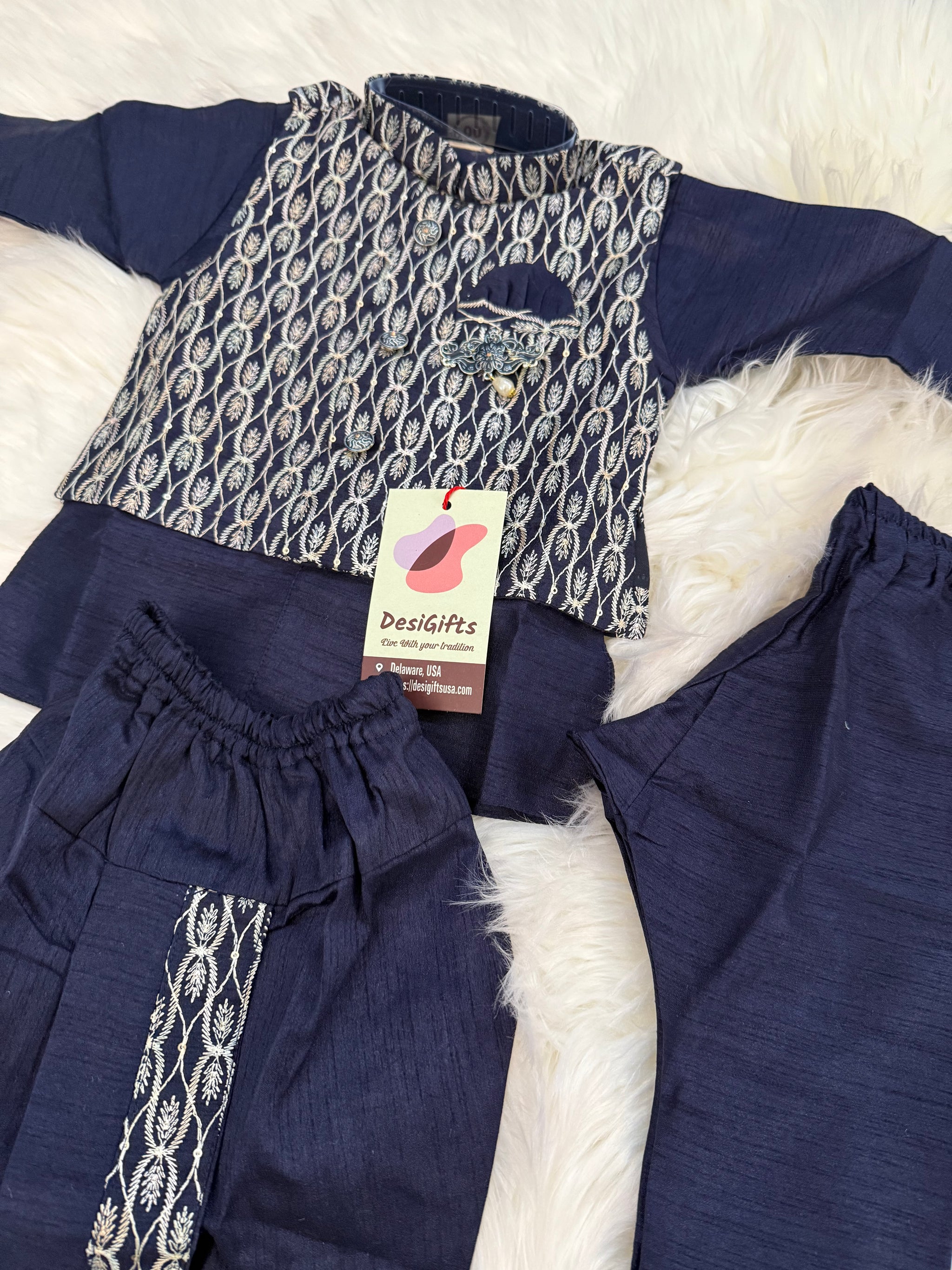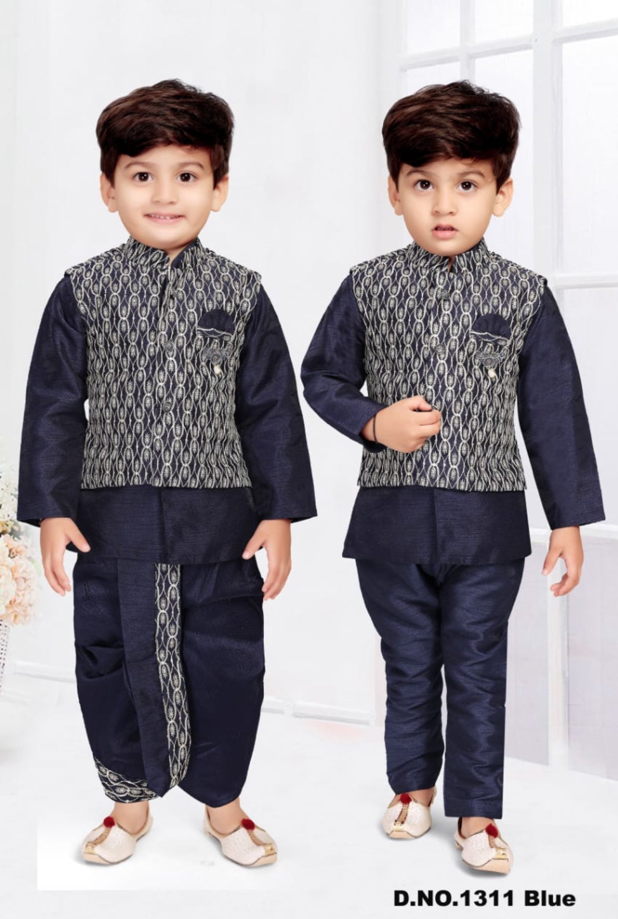 Maroon shade Kurta, Dhoti, with jacket and Pajama