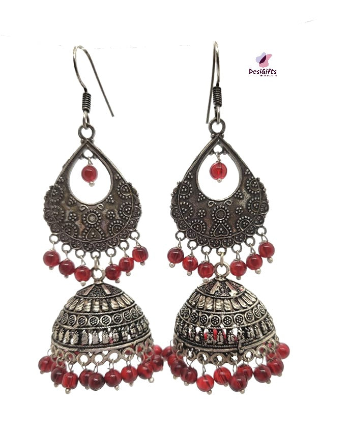 Oxidized German Silver Baali Jhumka Earrings, Multiple Colors, ER#480