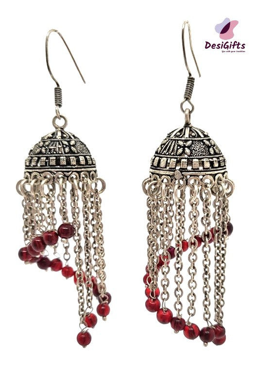 Oxidized German Silver Long Chain hanging Jhumka Earrings, Multiple Colors, ER#435