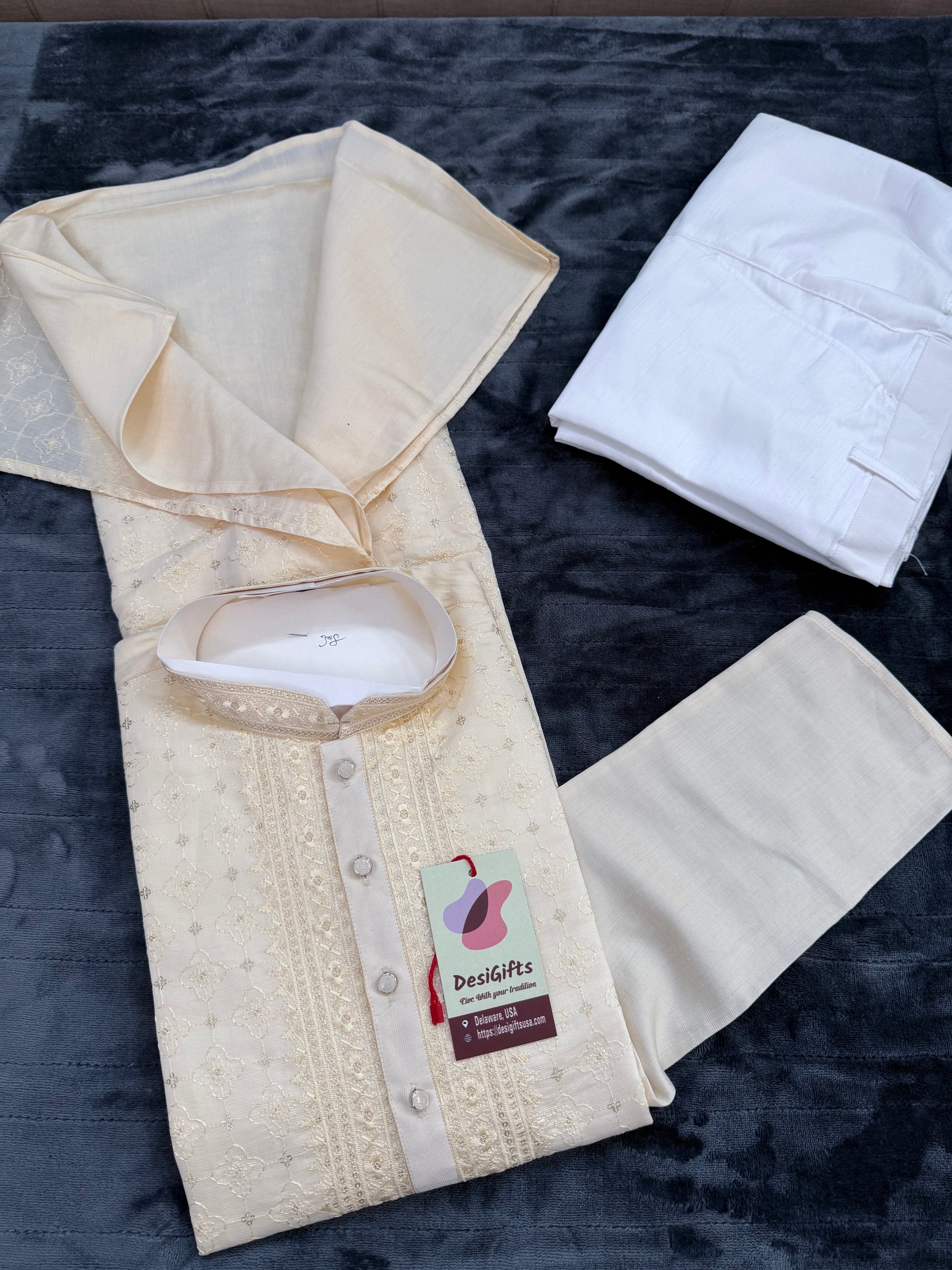Ethnic Kurta Pajama Set with classic embroidery on Neck and Front Side, Festival Kurta Pant style Pajama set for Man, KP - 1960