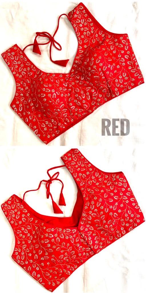 Silk Deep Neck Blouse With Sequins and Thread work Saree Blouse, Design BLS-1614