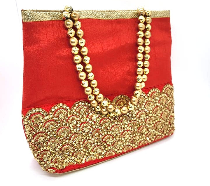 Raw Silk Handbags with Golden Zari Gota Patti work, HBS#185