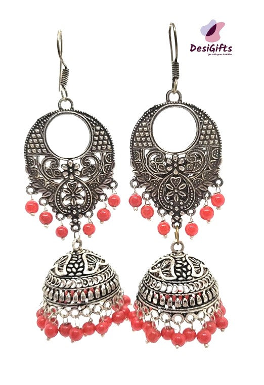 Oxidized German Silver Baali Jhumka Earrings, Multiple Colors, ER#480