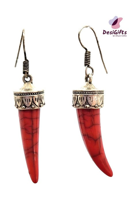 Tusk Shape Quartz Stone in Oxidized Silver Earrings, ER#487