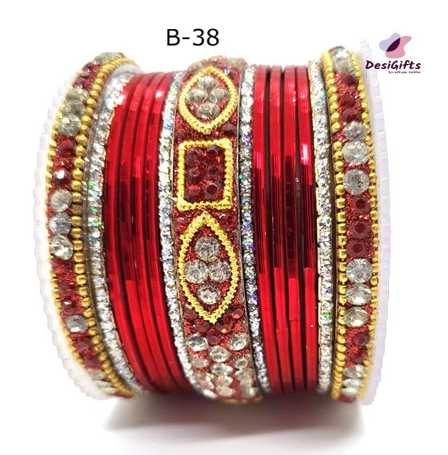 Traditional Stone Studded Bracelet Bangle Set, Size 2.6", BGL#506