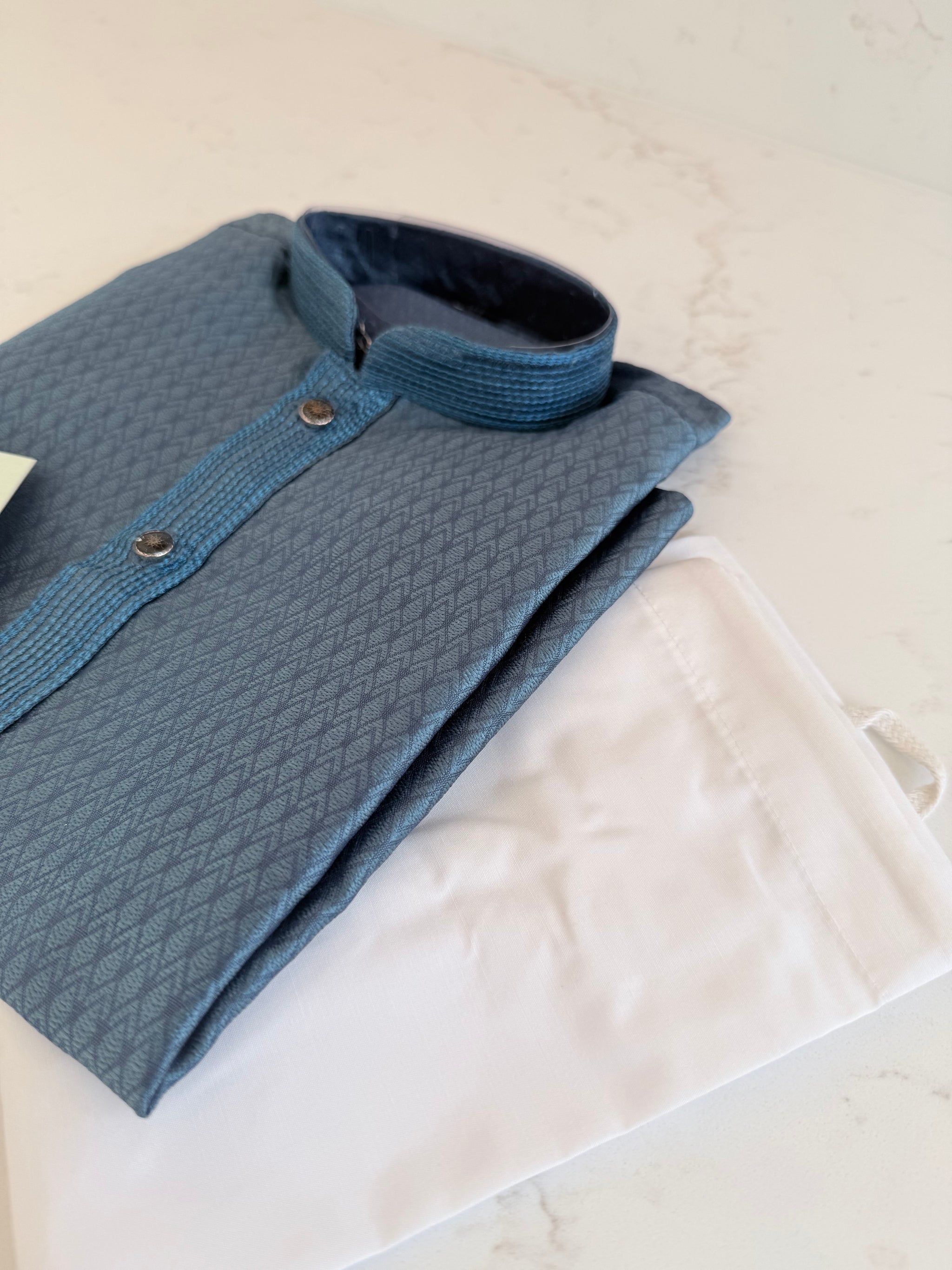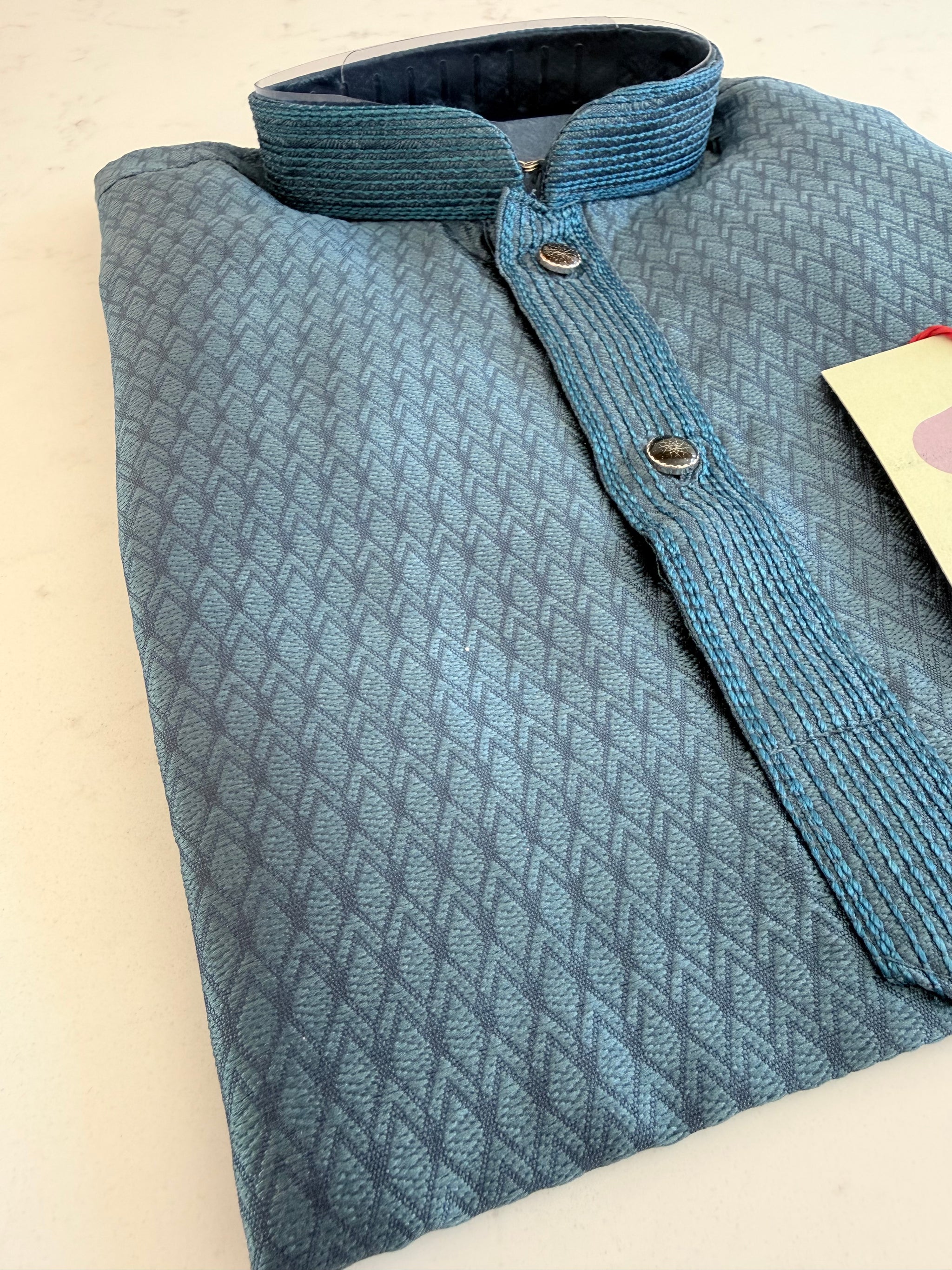 Blue Shade Boy's Cotton Silk Self Design Kurta Pajama - Design BOY-2003