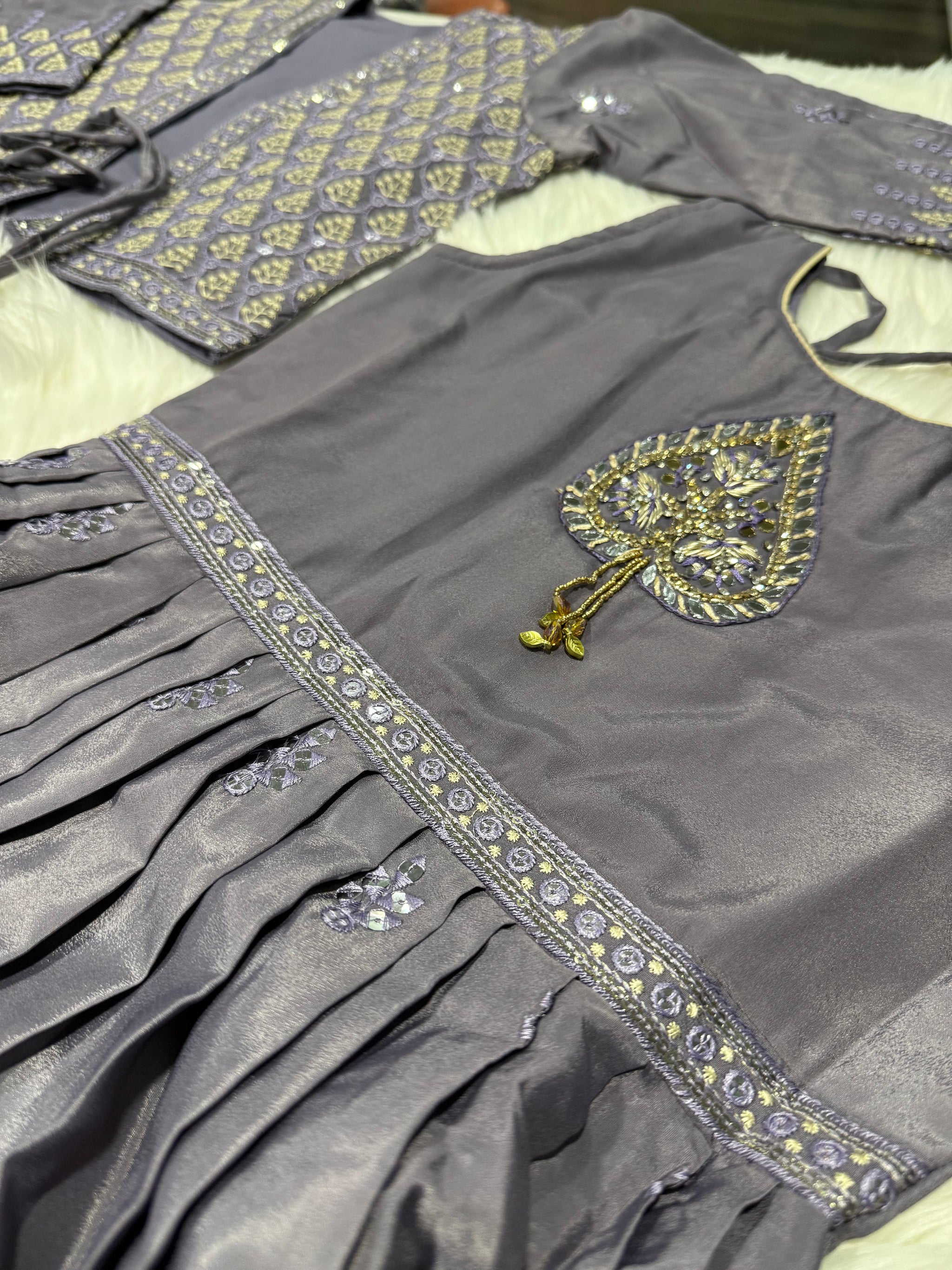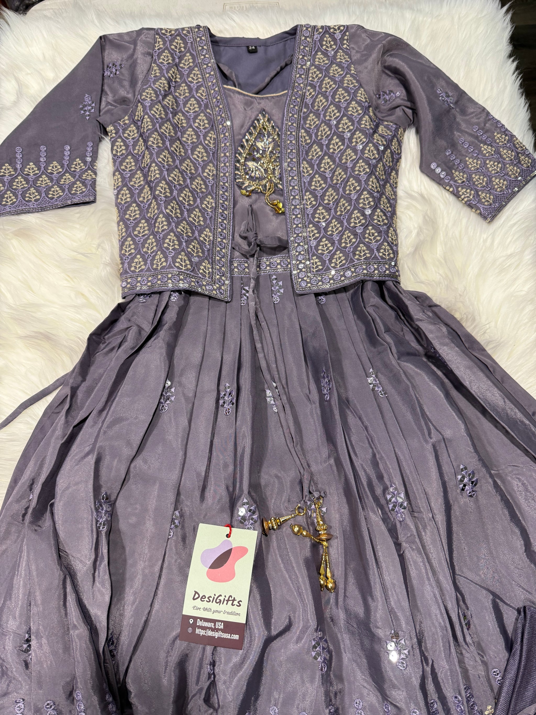 Fancy & Fly full length dress & Jacket with a touch of gota and embroidery magic. Palazzo and Dupatta included!