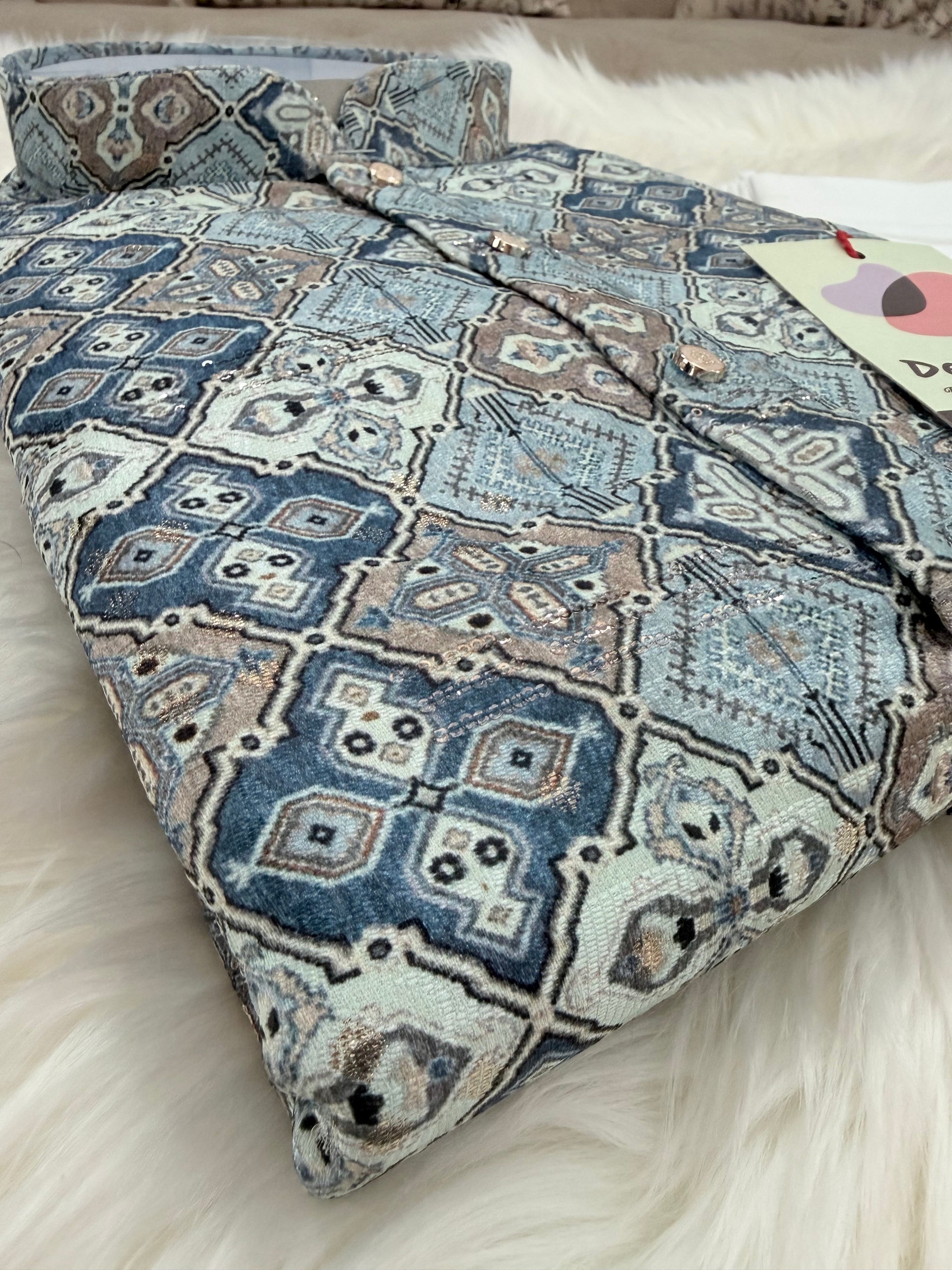 Kurta : Blue shade with colorful pattern
