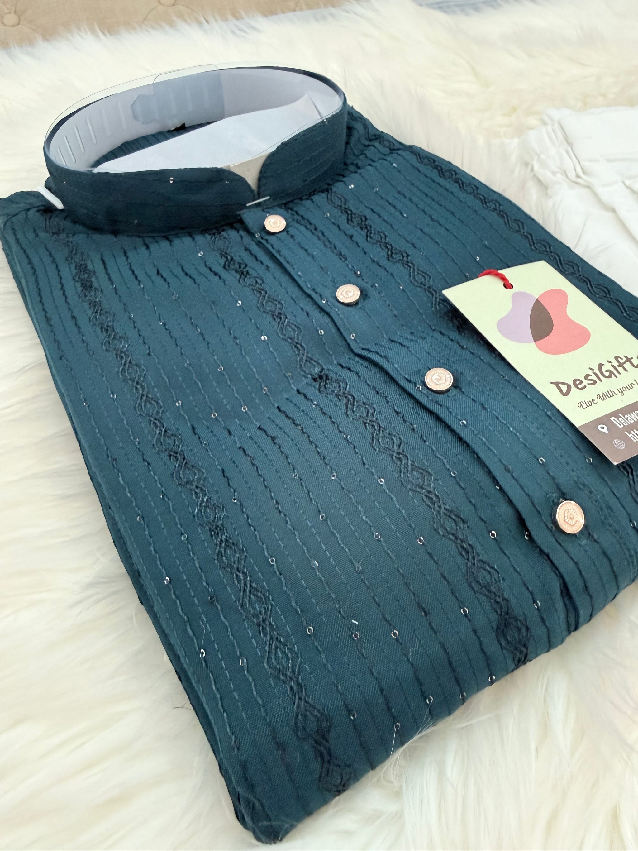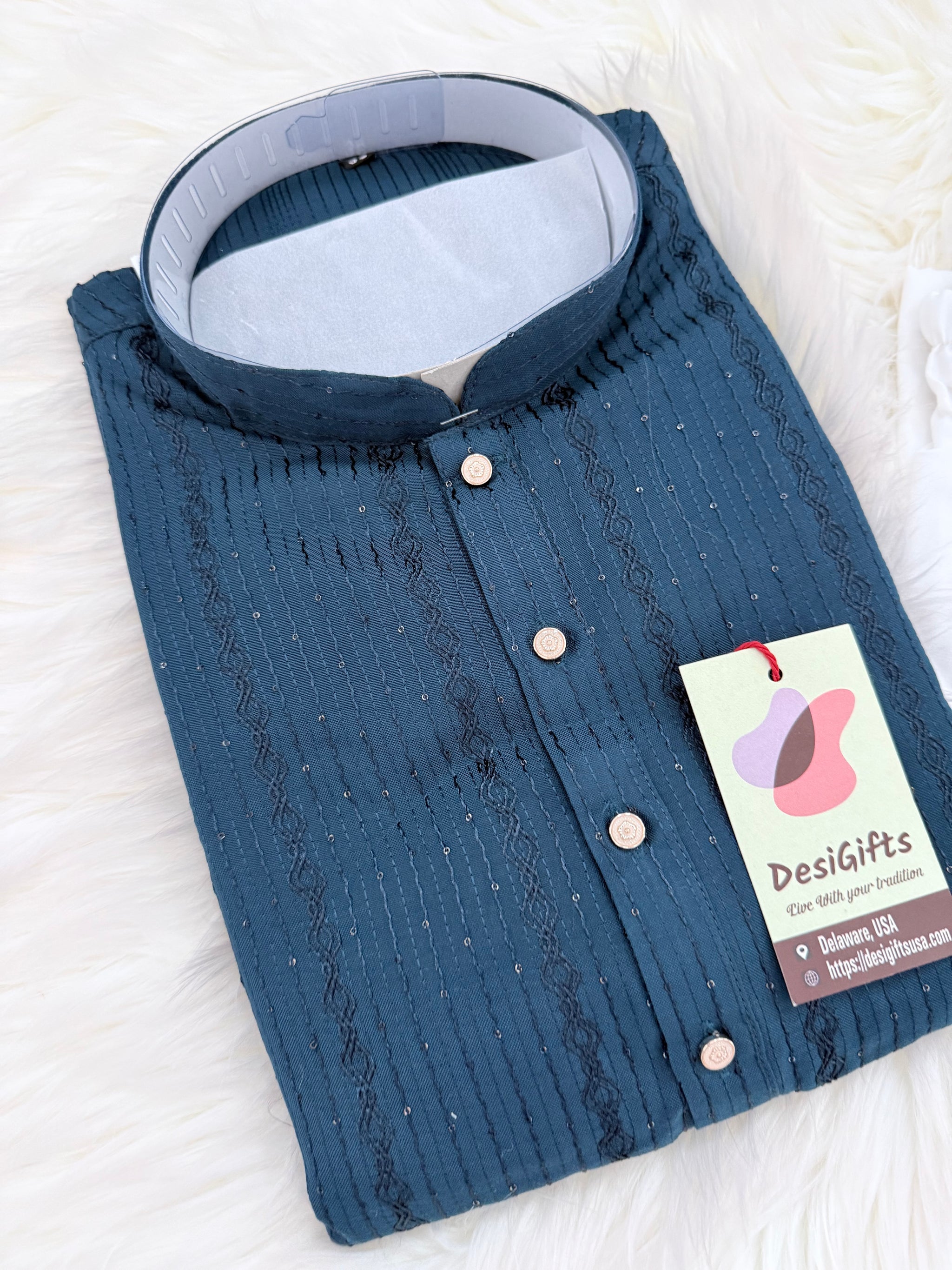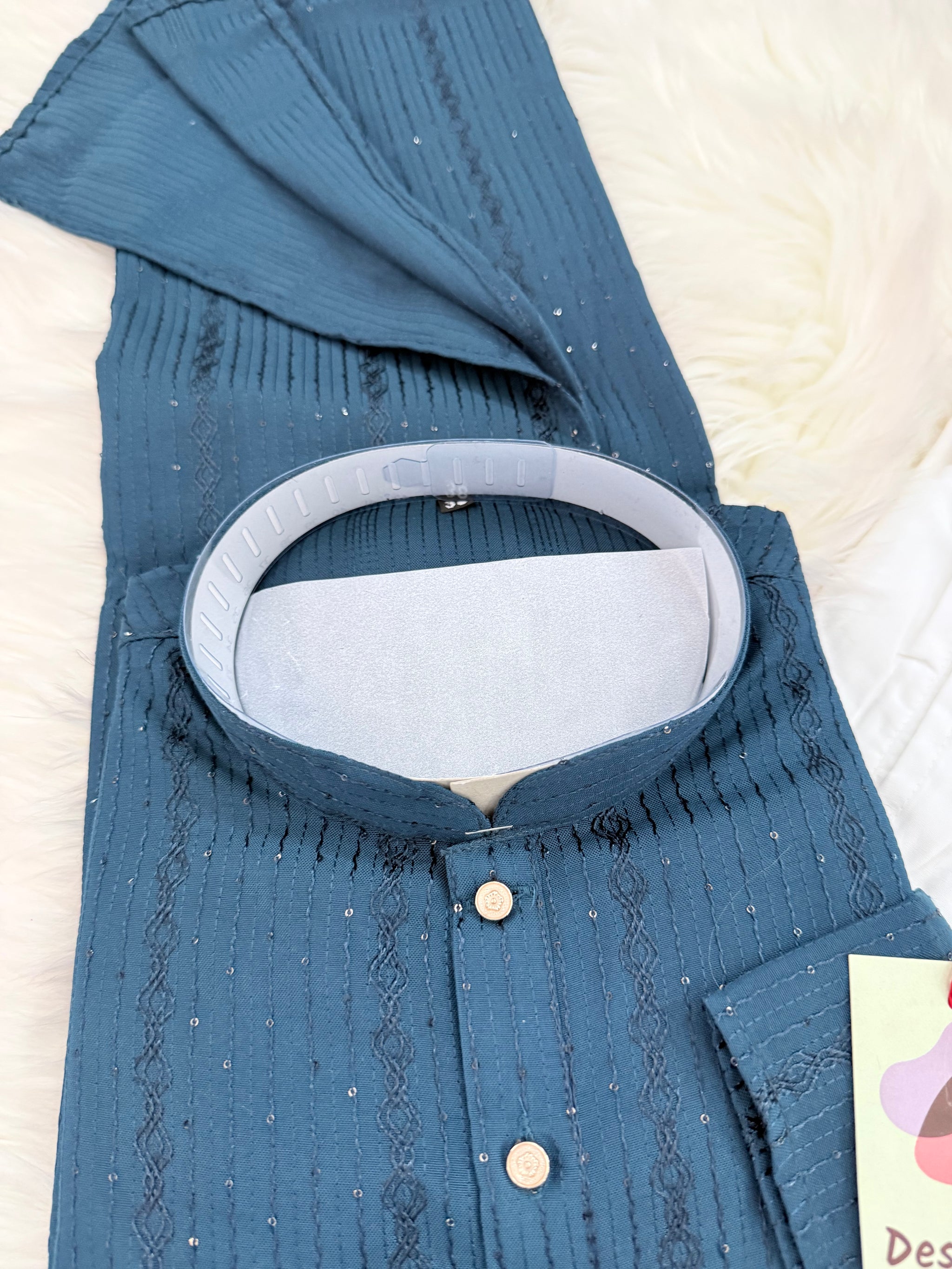 Men’s Teal Shade Sequins Embroidered Kurta Pajama Set – Indian Wedding & Partywear Traditional 2PC Outfit, Size 58 , 5XL, KP-2025
